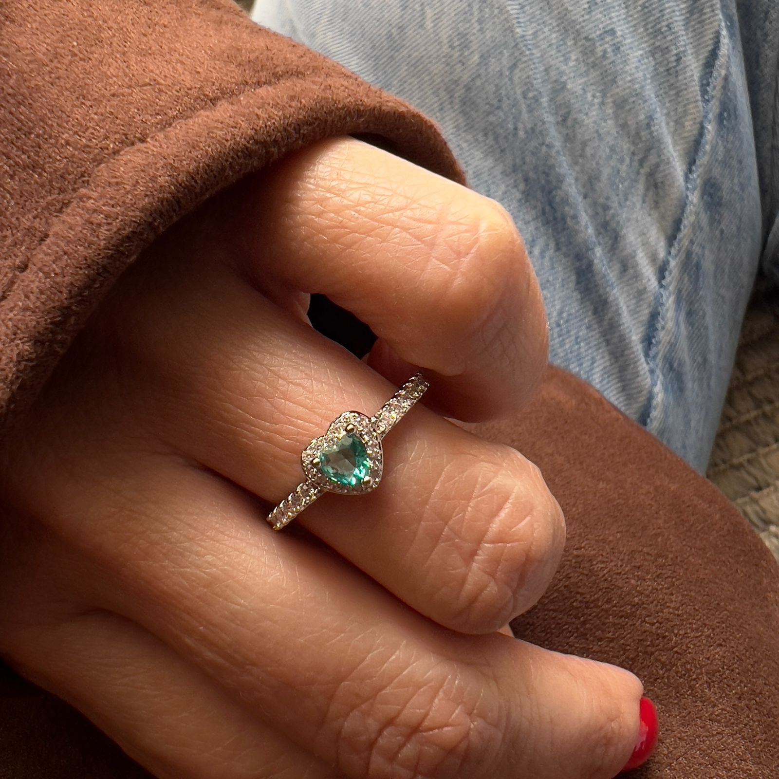 ANEL CORAÇÃO SEMI JÓIA EM RÓDIO BRANCO