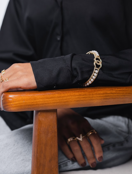 Inspiração da mais alta joalheria. Com strass e pérolas cravejadas. Uma peça que transmite elegância, sofisticação, poder e muito estilo.