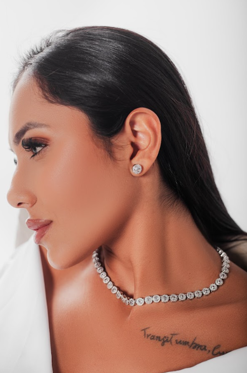 Inspiração da mais alta joalheria, o conjunto de colar e brinco Angelic é composto por peças cravejadas com zircônia e cristais, que refletem elegância, sofisticação e muito estilo. O colar possui 39 cm, é banhado no ródio branco e confeccionado em metal de alta qualidade. A zircônia cúbica, produzida em laboratório, possui brilho e características extremamente semelhantes ao diamante, sendo praticamente idêntica a olho nu e com um custo muito mais acessível, o que faz dela a escolha perfeita entre joalheiros e na fabricação de semijoias. As peças são antialérgicas, livres de níquel e contam com fecho tipo joia, garantindo segurança e praticidade no uso.