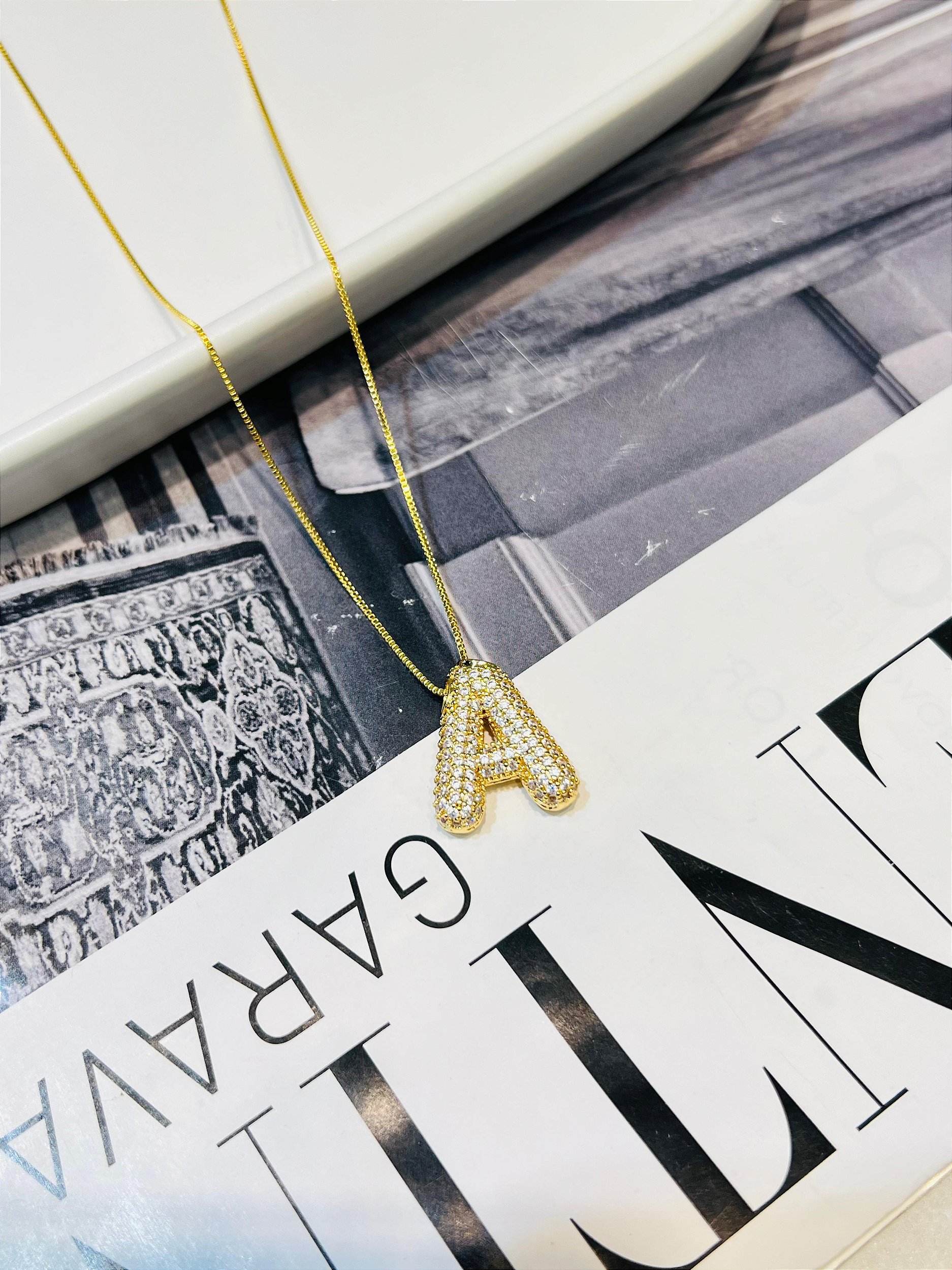 Colar inicial letra nuvem folheado a ouro. Banho um milesimo de ouro mais camada de verniz nacional.