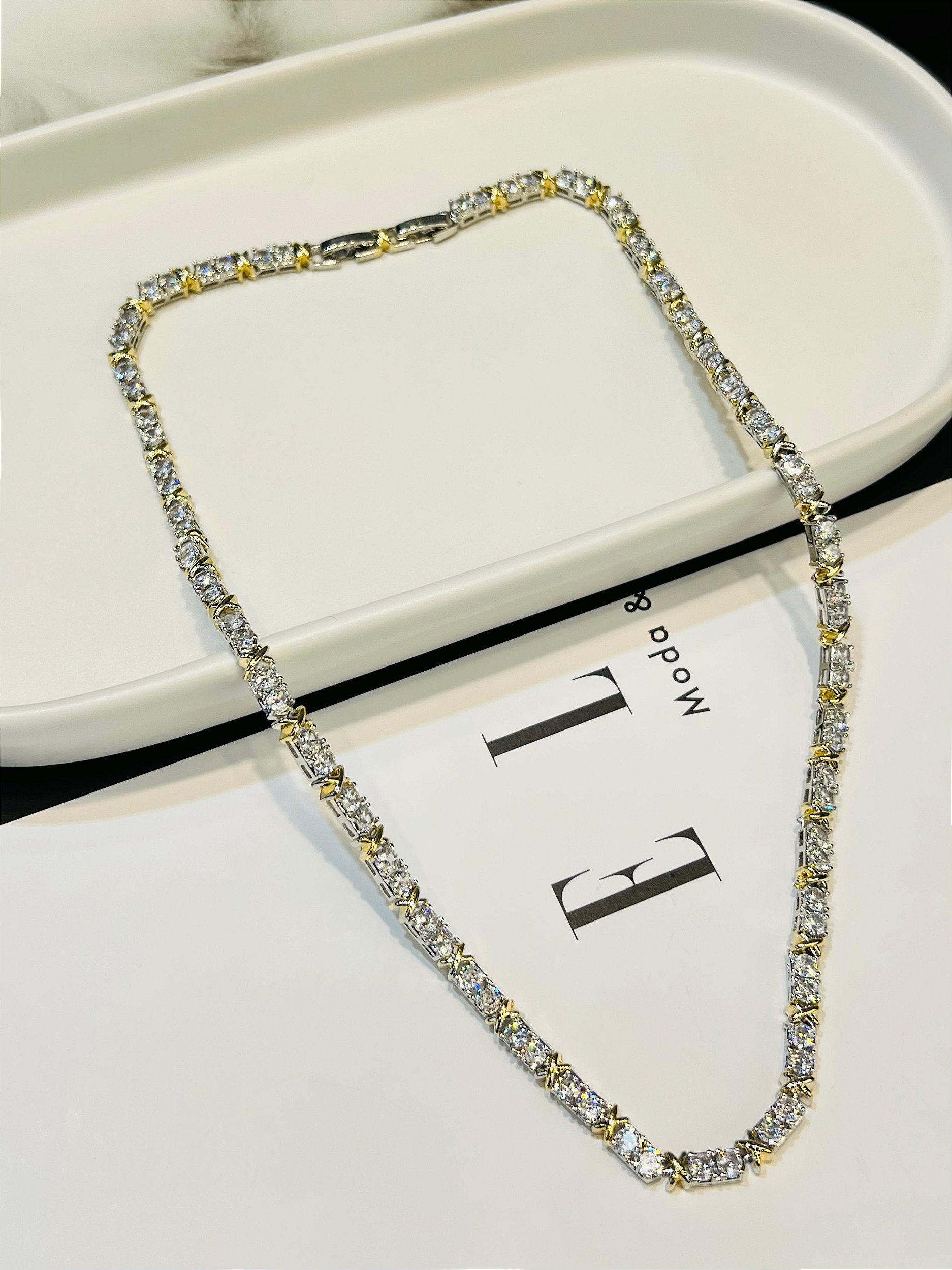 Inspiração da mais alta joalheria. Com cristais cravejadas e zircônia. Uma peça que transmite elegância, sofisticação, poder e muito estilo. Colar inspiração TFF.