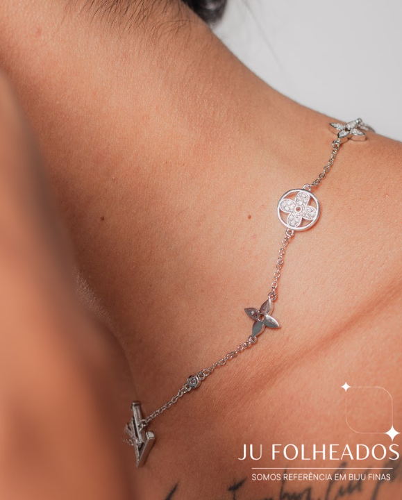 Inspiração da mais alta joalheria, o colar LV é uma peça cravejada com cristais, que transmite elegância, sofisticação e muito estilo. Semi joia de alta qualidade, confeccionada em metal banhado no ródio branco, possui 45 cm de comprimento, fora o extensor, oferecendo caimento perfeito para quem busca um acessório refinado, atemporal e versátil. O colar é antialérgico, livre de níquel e conta com fecho tipo joia, garantindo segurança, praticidade e durabilidade.
