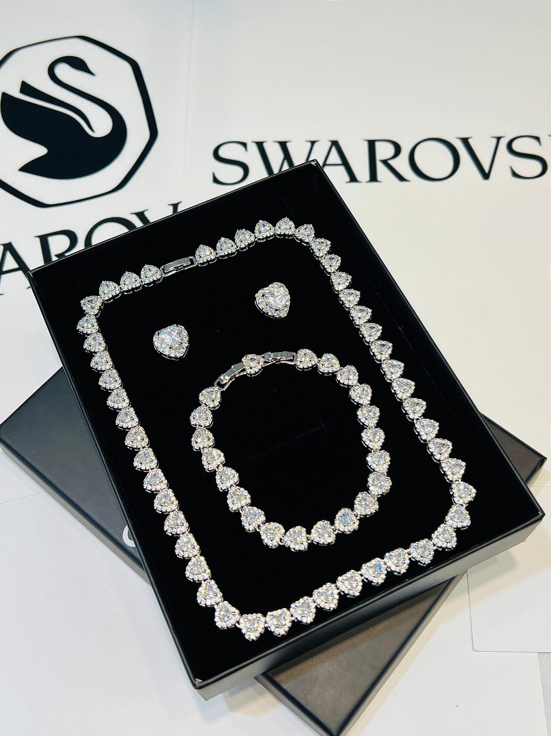 Um Colar, um par de brincos e uma pulseira.