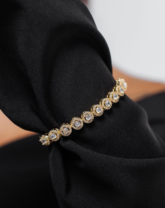 Inspiração da mais alta joalheria. Com mini zircônia e cristais cravejados. Peça que transmite elegância, sofisticação, poder e muito estilo.