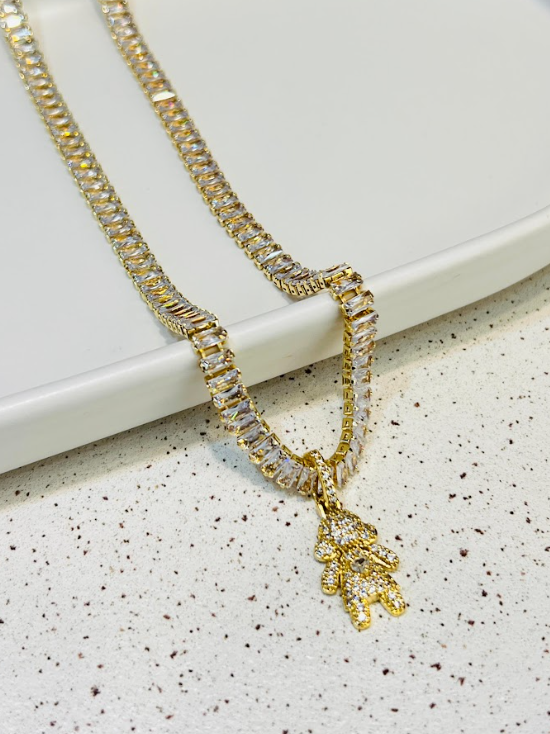 Inspiração da mais alta joalheria, a Riviera com pingente de menina é uma peça cravejada com mini zircônias, que transmite elegância, sofisticação e muito estilo. Folheada de alta qualidade, confeccionada em metal com banho de 1 milésimo de ouro e camada de verniz nacional, ou na versão prata com banho em ródio branco, garantindo durabilidade e acabamento impecável. Possui 40 cm de comprimento, oferecendo caimento perfeito para quem busca um acessório delicado, atemporal e cheio de significado. A zircônia cúbica, produzida em laboratório, possui brilho e características extremamente semelhantes ao diamante, sendo praticamente idêntica a olho nu, porém muito mais acessível. A peça é antialérgica, livre de níquel e conta com fecho tipo joia, que proporciona segurança e praticidade no uso.